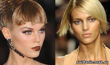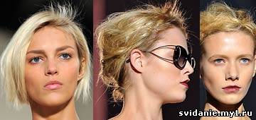 Женские прически Женские прически, фото: Dsquared, Bottega Veneta Локоны - пожалуй, это самая популярная прическа, вечно модная классика. Мягкие локоны делают образ женственным и сексуальным. Обрати внимание на фото справа: для модного образа достаточно кокетливого завитка около лица - так просто создать модную прическу! К женственному образу подходит натуральный макияж в нежных розовых, персиковых или золотистых тонах. Небрежные прически и стрижки Женские прически, фото: Chloe, Alberta Ferretti Самые ленивые могут без угрызений совести забыть о расческе в этом году. Лохматые стрижки и прически на пике популярности! Длинные прически Женские прически, фото: Miu Miu, Zac Posen, Emilio Pucci С какого-то времени прически для длинных волос стали называть сокращенно "длинные прически". На сегодня самая популярная длинная прическа делается просто: передние волосы зачесываются назад и крепятся заколками на затылке. При этом волосы могут быть приглаженными или объемными, как на фото вверху, в центре. Обрати внимание на прическу слева на фото - снова входят в моду прически с эффектом мокрых волос. Только теперь не все волосы подвергаются эффекту мокрых волос, а лишь частично. Модная прическа, фото: Emilio Pucci Ретро прически Прически, фото: Yves Saint Laurent, Oscar de la Renta, Prada Еще одно популярное направление в этом году - ретро прически. Очень важно найти профессионала, который сумеет сотворить это чудо. Волос к волосу Прически, фото: Marni, Michael Kors, Versace Если Ты выбираешь образ леди, то ни один волосок не должен выбиваться. Для этой прически пробор делай ровный, без зигзага, либо волосы зачесывай назад, без пробора. Учти, что гладкая прическа с зачесанными от лица волосами противопоказана тем, у кого круглое лицо, и предполагает яркий макияж с акцентом на глаза или губы. Модно: волосы, собранные в пучок сбоку, как на фото слева. Модные стрижки. Короткие прически Зима, Весна - 2009 Прически, фото: Christian Dior, Derek Lam Модные тенденции сезона - очень длинная челка или неровная челка, как на фото сверху.